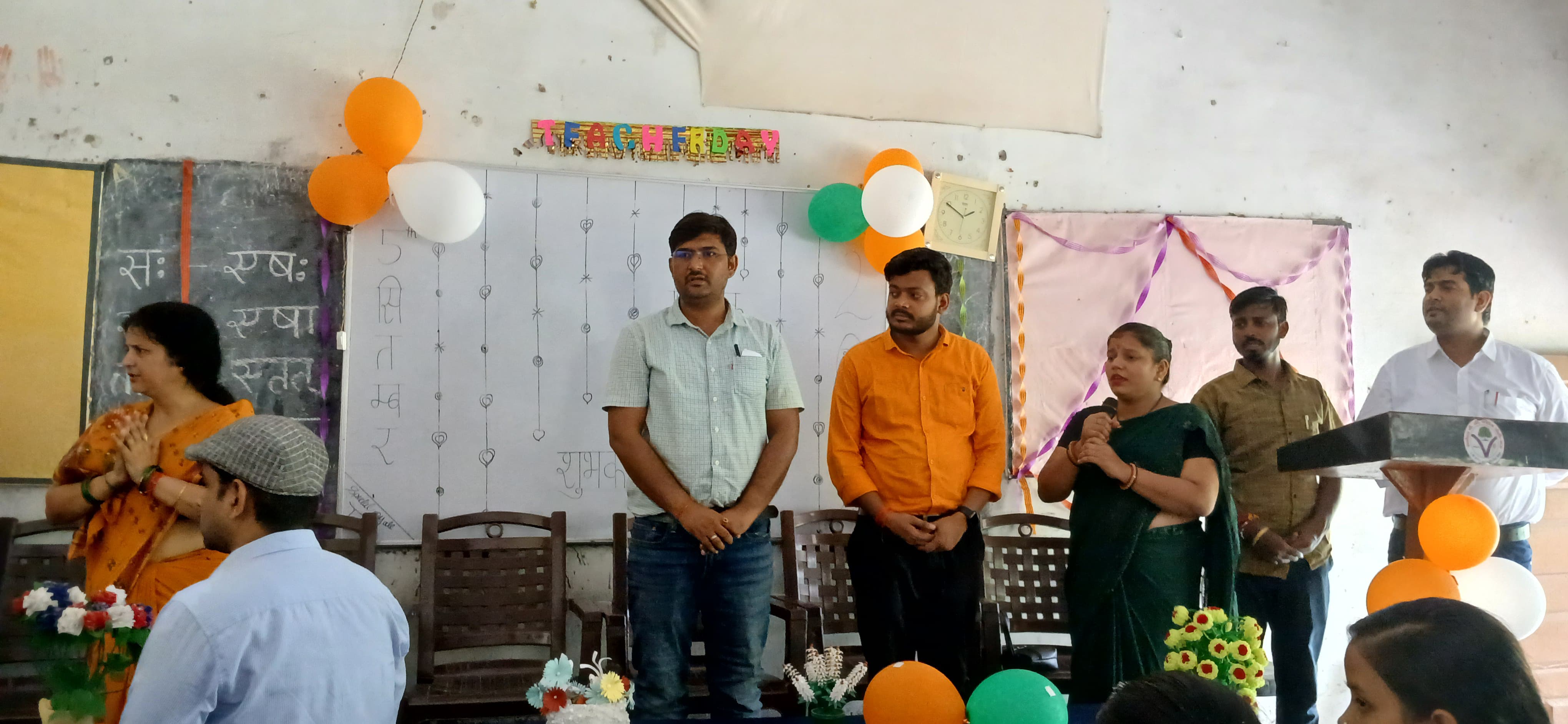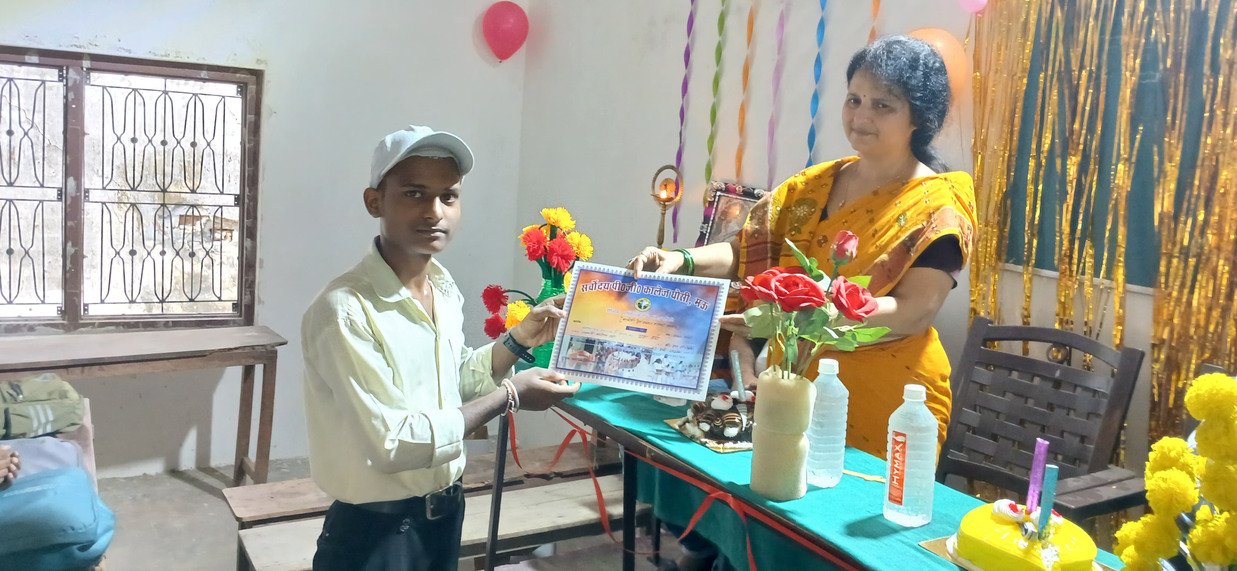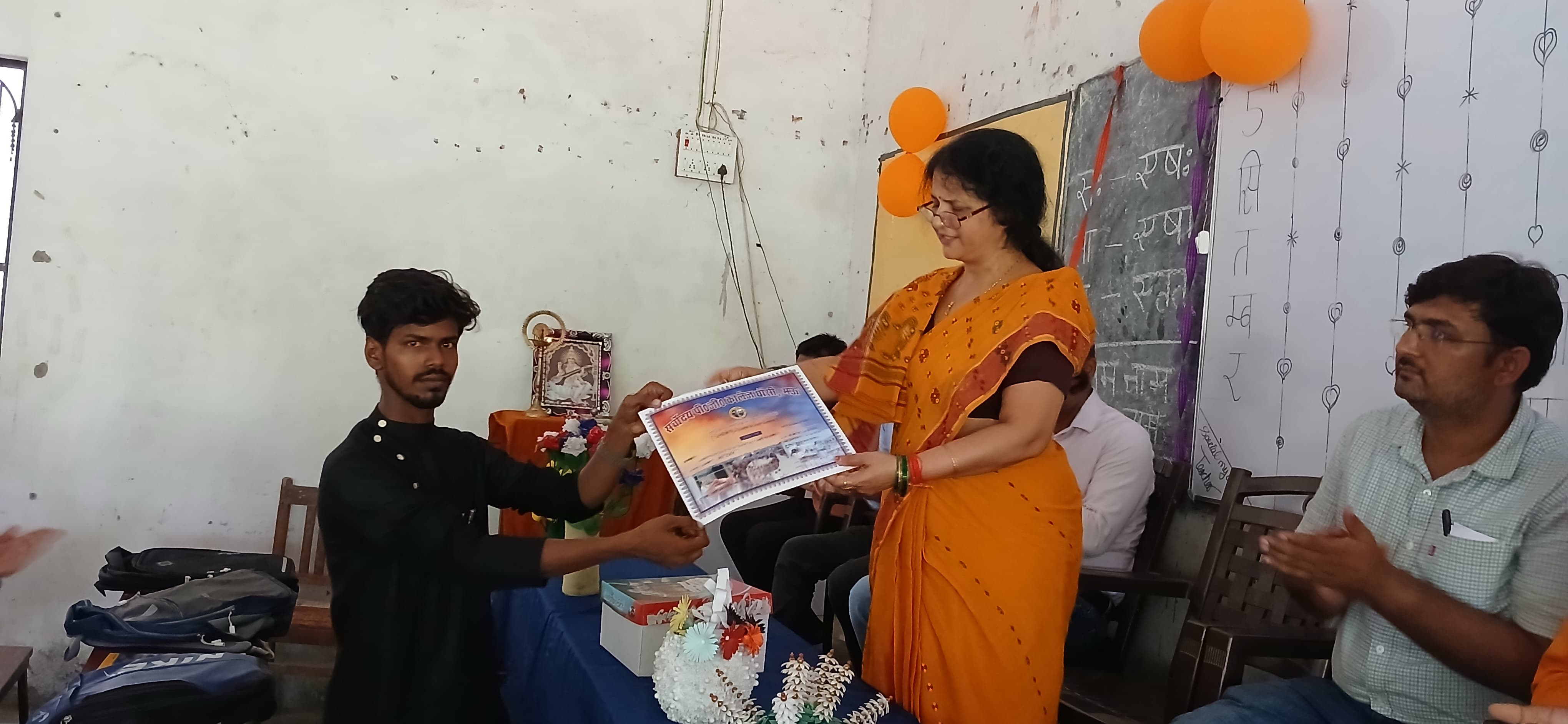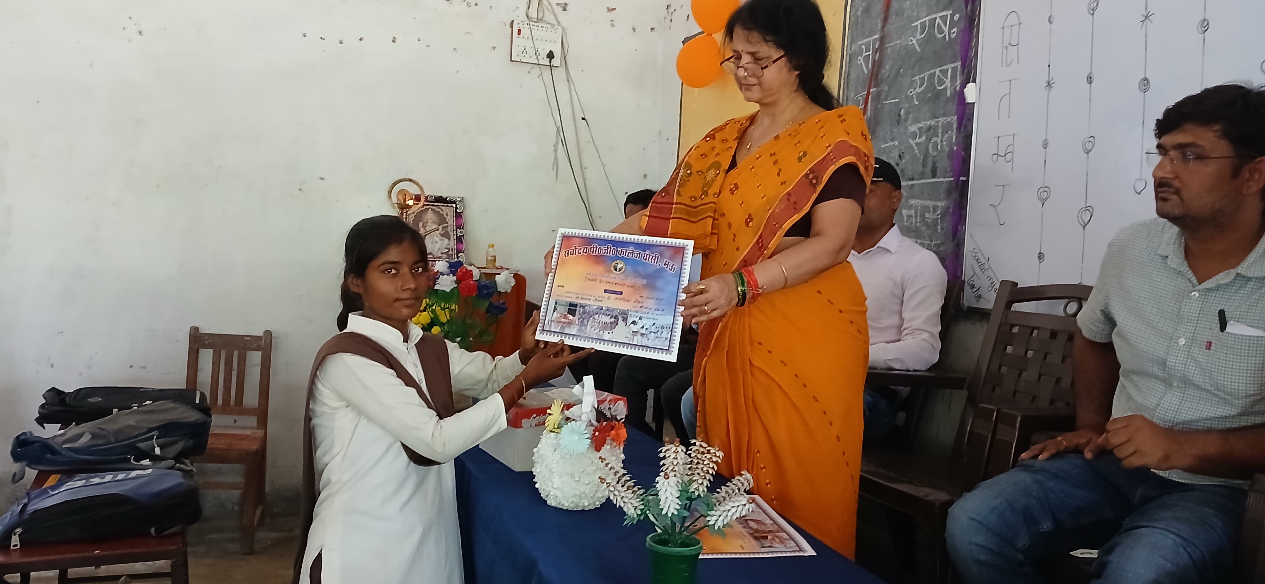 सर्वोदय पी जी कॉलेज घोसी में शिक्षक दिवस के पुनीत अवसर पर महाविद्यालय के छात्र/ छात्राओं ने शिक्षक सम्मान समारोह का आयोजन किया। इस अवसर पर सर्वप्रथम मां सरस्वती के चित्र पर पुष्पार्पण एवं दीप प्रज्ज्वलित किया गया। तत्पश्चात् छात्र / छात्राओं ने सरस्वती वन्दना,स्वागत गीत प्रस्तुत किया। छात्र-छात्राओं ने शिक्षक दिवस के संदर्भ में अपनी बात रखते हुए सभी शिक्षकों के प्रति कृतज्ञता ज्ञापित कर और केक काटकर शिक्षक दिवस मनाया। महाविद्यालय की प्राचार्या प्रोo वन्दना पाण्डेय ने शिक्षा एवं शिक्षक के महत्व पर प्रकाश डालते हुए बच्चों को प्रोत्साहित किया और आशीर्वाद प्रदान किया। इस अवसर पर काकोरी ट्रेन एक्शन के शताब्दी समारोह के उपलक्ष्य में 9अगस्त 2024 को आयोजित चित्रकला प्रतियोगिता के विजेताओं – यश वर्मा बी. एस सी० (कृषि).प्रथम वर्ष प्रथम सेम० को प्रथम स्थान, अनामिका चौहान बी. ए. तृतीय वर्ष पंचम सेम० को द्वितीय स्थान तथा अली अंसारी द्वितीय वर्ष तृतीय सेम० को तृतीय स्थान का प्रमाण–पत्र प्रदान कर सम्मानित किया।
