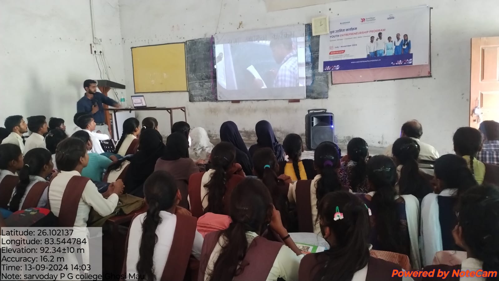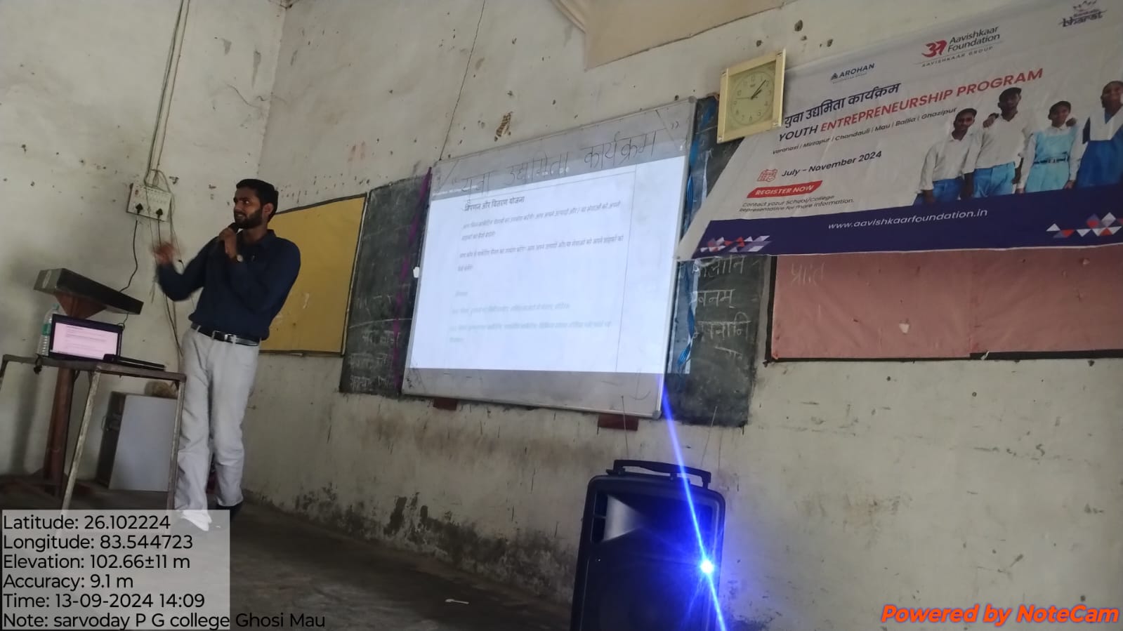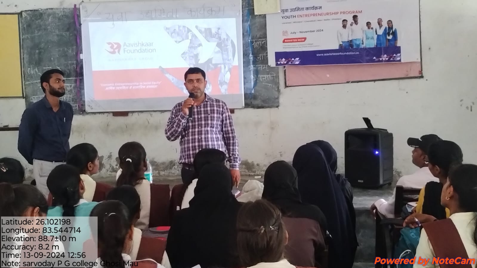 युवा उद्यमिता कार्यक्रम के अन्तर्गत आविष्कार फाउंडेशन द्वारा एक कार्यशाला का आयोजन सर्वोदय पी जी कॉलेज, घोसी, मऊ परिसर में किया गया जिसमें विद्यार्थियों को उद्यमिता की अवधारणा से परिचित कराते हुए स्वयं का उद्यम कैसे आरम्भ किया जाए, इसके बारे में विस्तृत जानकारी दी गई। फाउंडेशन की ओर से कार्यशाला को संबोधित करते हुए फाउंडेशन के मैनेजर सिद्धान्त राज ने कहा कि प्रत्येक उद्यम की शुरुआत किसी न किसी समस्या से होती है। समस्या का निराकरण ही उद्यमिता को जन्म देता है। उन्होंने बताया कि एक सफल उद्यमी बनने के लिए विभिन्न चरणों जैसे – समस्या की पहचान, उद्यम का सही नामकरण, उद्यम प्रारम्भ करने हेतु आवश्यक संसाधन , मार्केटिंग, फाइनेंशियल प्लैनिंग आदि की जानकारी अत्यन्त आवश्यक है ।उक्त कार्यशाला में महाविद्यालय के विद्यार्थियों ने उत्साहपूर्वक प्रतिभाग किया तथा दी गई जानकारी से लाभान्वित हुए। इस अवसर पर आविष्कार फाउंडेशन टीम की सदस्य शिखा जी एवं महाविद्यालय के शिक्षक डॉ संजय कुमार राय, डॉ राजीव मिश्र, डॉ सत्येंद्रकांत मौर्य ,डॉ धनंजय शर्मा, डॉ नवनीत उपाध्याय, श्री संतोष कुमार राय एवं महाविद्यालय के कर्मचारीगण उपस्थित रहे।