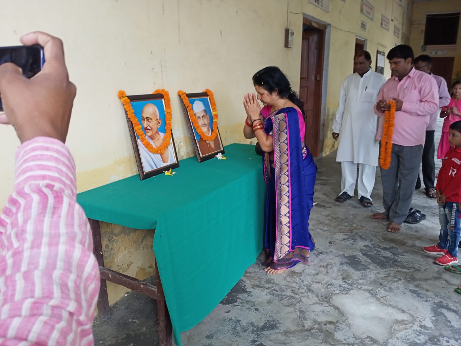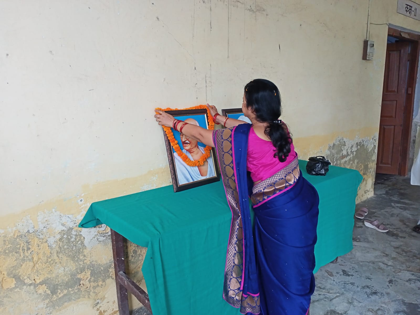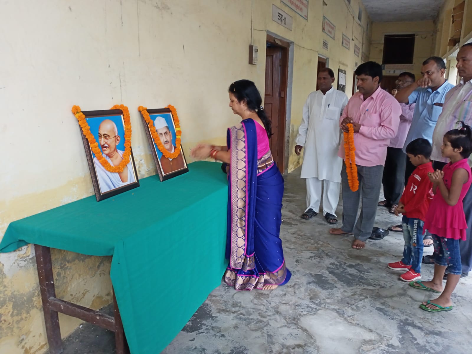 आज दिनांक 02 अक्टूबर 2023को महात्मा गाँधी एवं लाल बहादुर शास्त्री जी की जयंती पर झण्डोत्तोलन कर राष्ट्र गान किया गया तथा इनके चित्रों पर माल्यार्पण किया गया।