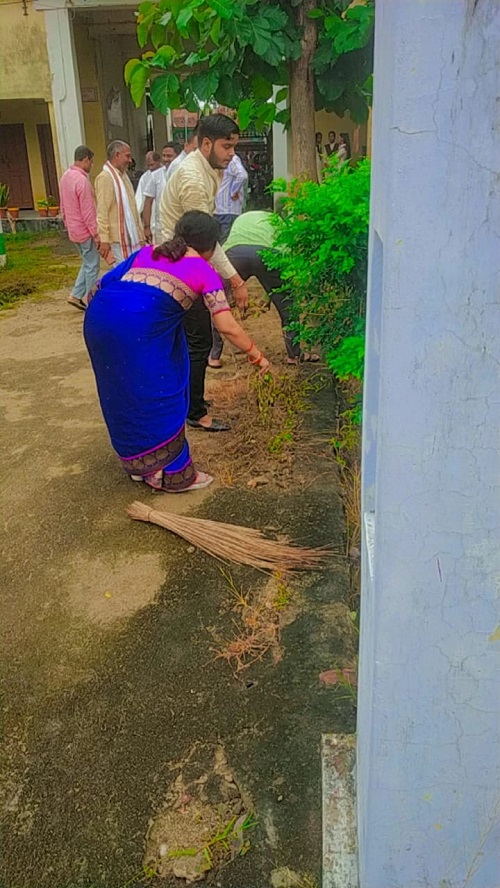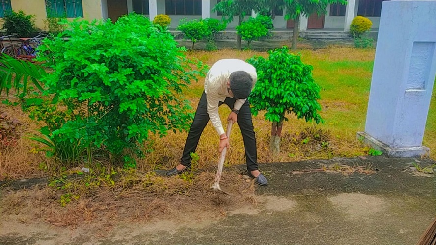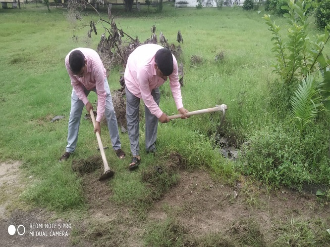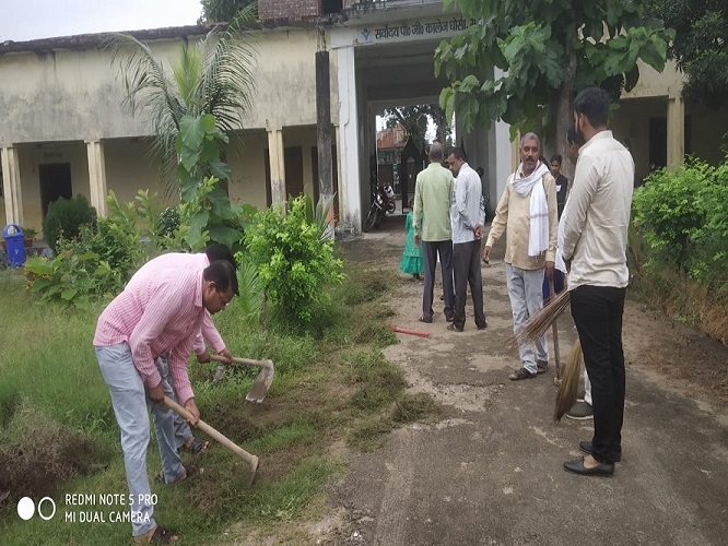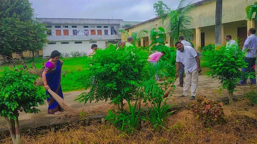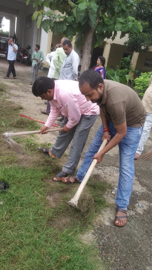 स्वच्छता सेवा के अन्तर्गत सर्वोदय पी जी कालेज घोसी मऊ श्रमदान करते प्राचार्य, कर्मचारी एवं छात्र।